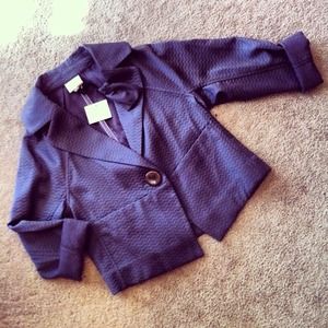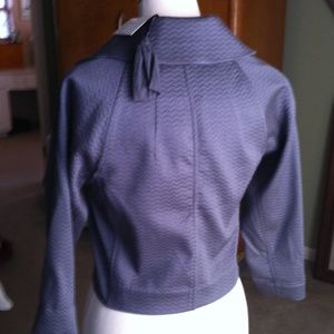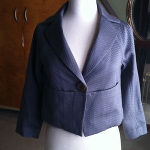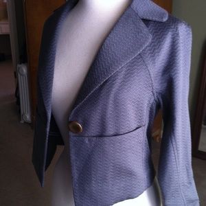 Cute, cropped-style lightweight jacket/blazer with tags - never worn! Fabric is medium gray with a chevron/herringbone woven design to add subtle texture. Shown with sleeves rolled to 3/4 length. Single large button closure, seams are nicely finished inside - not lined, perfect for Spring over sundress or with a simple shirt or T and jeans!