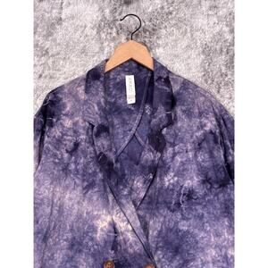 Anthropologie Jacket Medium Womens Purple Tie Dye Linen Woven Double Breasted