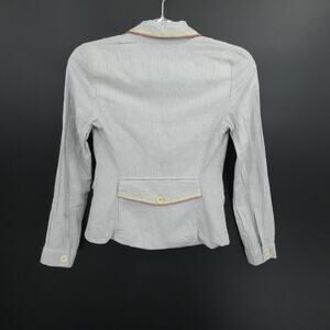 Anthropologie Jacket Women 6 Blue White Striped Cartonnier Blazer Linen Blend