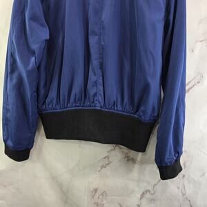 Anthropologie Jacket Women Small Blue Black Bomber Satin Hei Hei Crop Juneworthy
