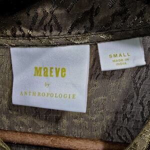 Anthropologie Jacket Womens Small Green Bomber Zip Silky Maeve Olive Leopard