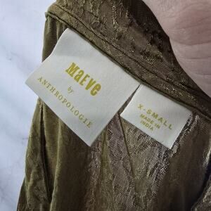 Anthropologie Jacket Womens XS Green Bomber Zip Silky Maeve Olive Leopard