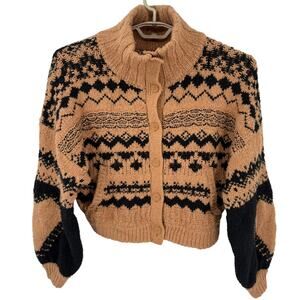 Gorgeous Anthropologie thick cozy sweater in jacquard heart pattern. buttons up the front a big ribbed collar. Oversize style andboxy, slightly cropped. So small it is in great used condition, it does have a little pilling. Laid flat it measures, approximately 26 inches from armpit to armpit and the length from the top of the shoulder down the back 20 inches.