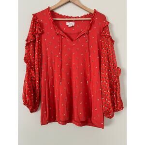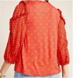 Anthropologie Jacquin Peasant Blouse Women's Top Shirt Red Circles Maeve Large