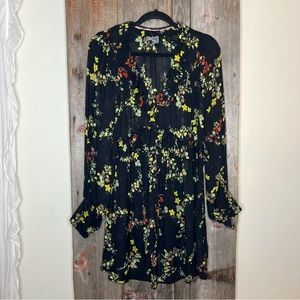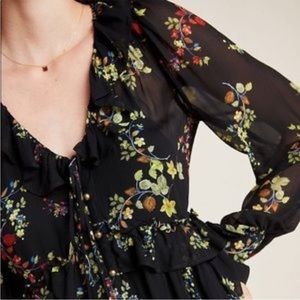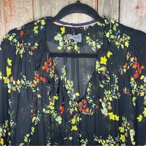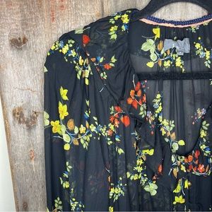 Anthropologie Jamison Black Floral Sheer Tunic With Ruffle Trim Dark Romance S