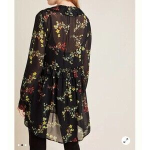 Anthropologie Jamison Tunic Top Small Black Floral Ruffle Semi Sheer Boho