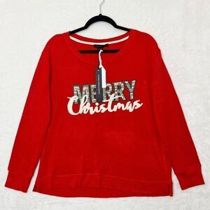 Anthropologie Jane + Delancey Red Merry Christmas Graphic Sweatshirt Size M NWT