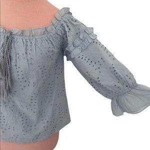 Anthropologie Jane Eyelet Lace Off Shoulder Top in Blue Size 12 EUC