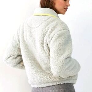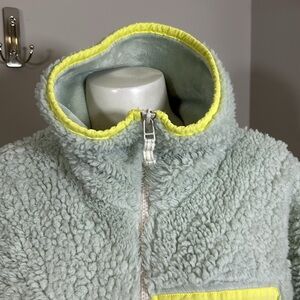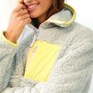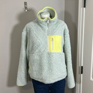 Anthropologie Janey Fleece Sherpa Jacket Quarter Zip Pullover Light Blue Yello M