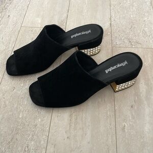 Anthropologie Jeffery Campbell Teseida Suede Rhinestone Mule Sandals Black 9