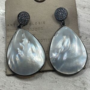 Anthropologie Jemma Sands Calhoun Statement Earrings Mother of Pearl Silver NWT