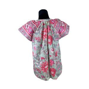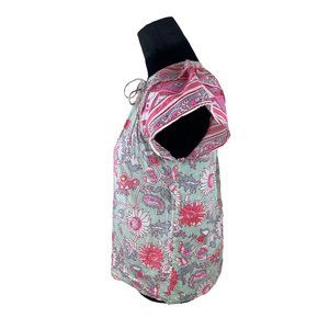 Anthropologie Jennifer & Grace Colorful Floral Short Puff Sleeve Blouse