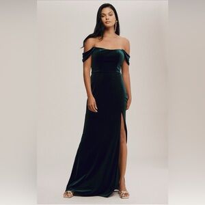 Anthropologie Jenny Yoo Issa Off-The-Shoulder Velvet Gown, Dark Emerald, Size 19