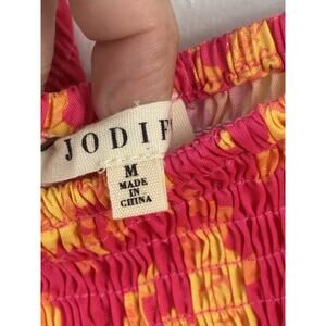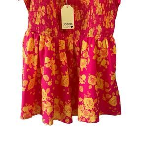 Anthropologie Jodifl Top Medium Orange Pink Smocked Puff Sleeve Cottagecore New