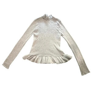 Anthropologie John & Jenn Gray Mock Neck Ribbed Ruffled Hem Sweater Size Small