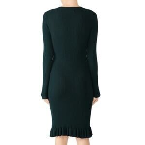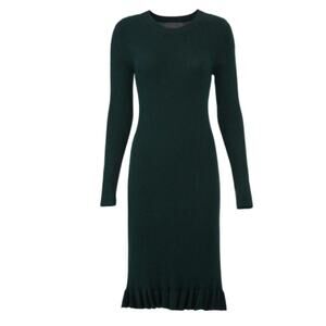 John + Jenn Dark Green Sweater Midi Dress with Ruffled Hem