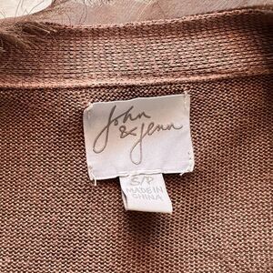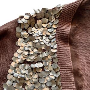 Anthropologie John & Jenn taupe brown sequin cropped cardigan sweater S
