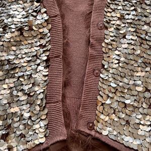 Anthropologie John & Jenn taupe brown sequin cropped cardigan sweater