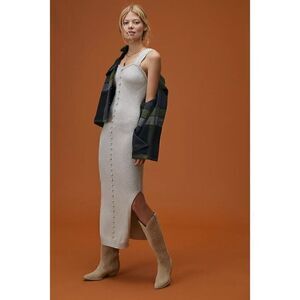 Anthropologie Joslin Slim Midi Dress Gray Linen Cotton Blend Knit M Medium NWT