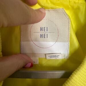 Anthropologie Journey Bomber Jacket Satin Yellow Hei Hei Size Large