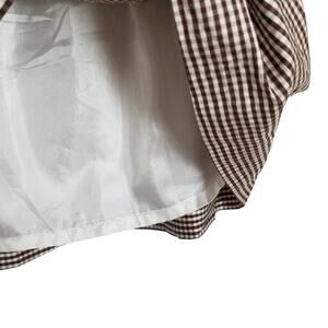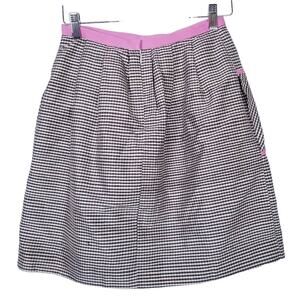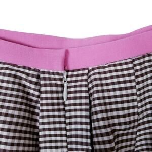 Anthropologie Julie Haus Pink Cream Chocolate Brown Check 100% Silk Skirt. So cute! This is ivory and brown check with pink trim. Pockets! Invisible zipper.