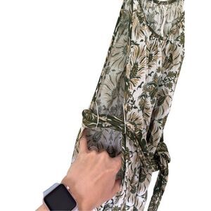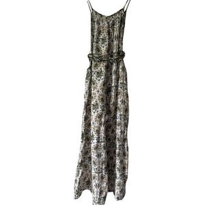 Anthropologie Jumpsuit size S Wide Leg Belted Tropical Garden Floral Cream Green Boho Bohemian Lagenlook