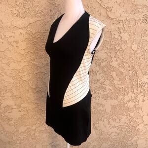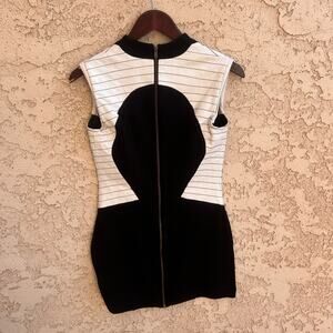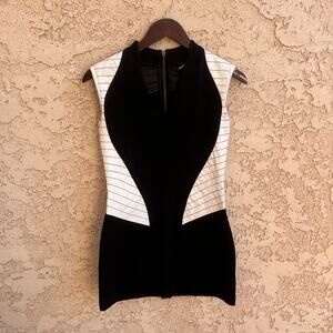 Black ponte fabric, white stitched leather, full zip back. Perfect condition the pictures don’t do it justice!