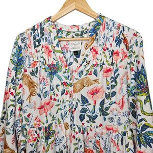 Anthropologie KELLY LOUISE JUDD Whimsical Flannel Sleep Dress. Size Small. V-Neck. Pintucks. Buttons. Cotton Modal Blend. Great pre-owned condition!