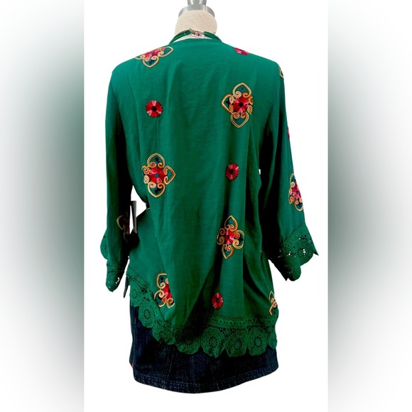 Anthropologie KINDRED -Elegant Green Embroidered Blouse