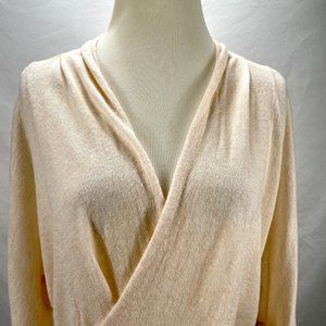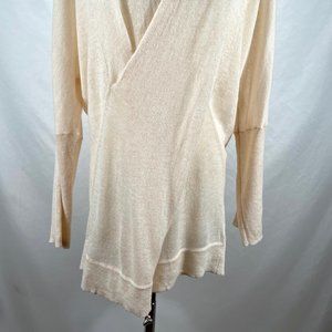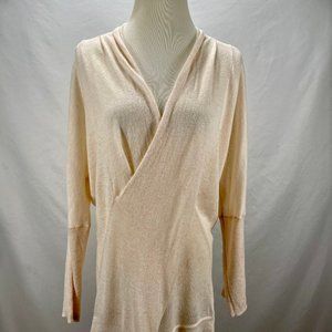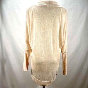 Anthropologie Knitted and Knotted Pullover Sweater. Very lightweight! Flattering draped style with surplice neckline, modest Dolman sleeves and longer length. Neckline is tacked down by design. Oversized. Long sleeves on most. Off-White.