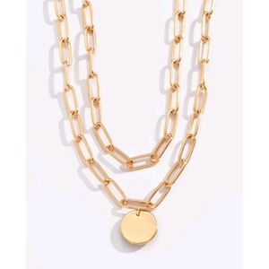 Anthropologie Kasey Layered Trendy Charm & Paperclip Gold Necklace