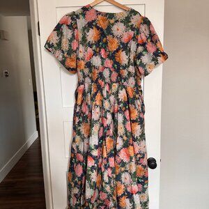 Anthropologie Katerina Button-Front Dress 1X. Lined dress with puff sleeves and button front accent. Elastic cinched back and pockets. Only worn once, purchased in 2025.