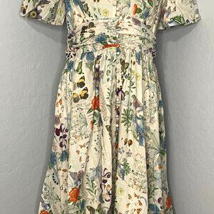 Anthropologie Katrina Buttont Front Multicolor Floral Butterfly Long Dress XLP