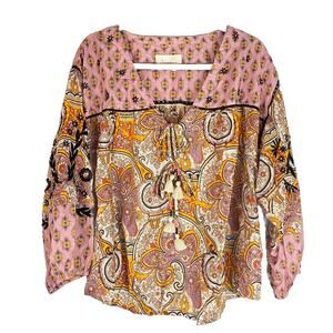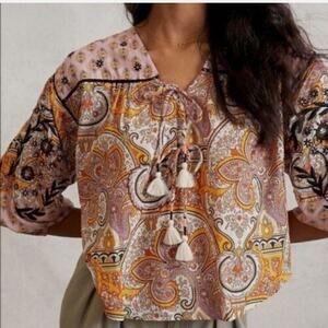 Anthropologie Kayleigh Boho Tassel Peasant Style Women’s Blouse Large