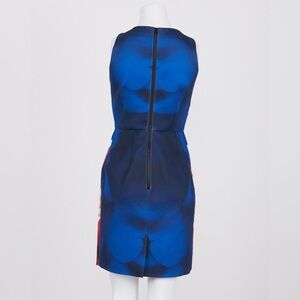 Embrace elegance with this stunning sleeveless dress. Featuring a vibrant blue and pink floral print, it's perfect for any occasion. The sleek design offers a flattering fit.