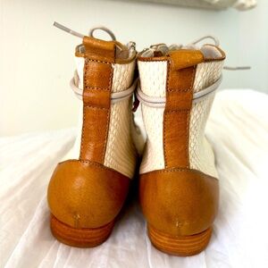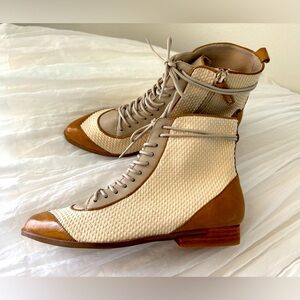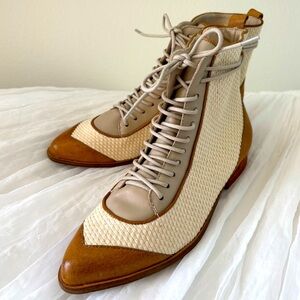 Anthropologie Kelsi Dagger 8 NWOT Cream & Tan Victorian Lace-Up Side Zip Boots