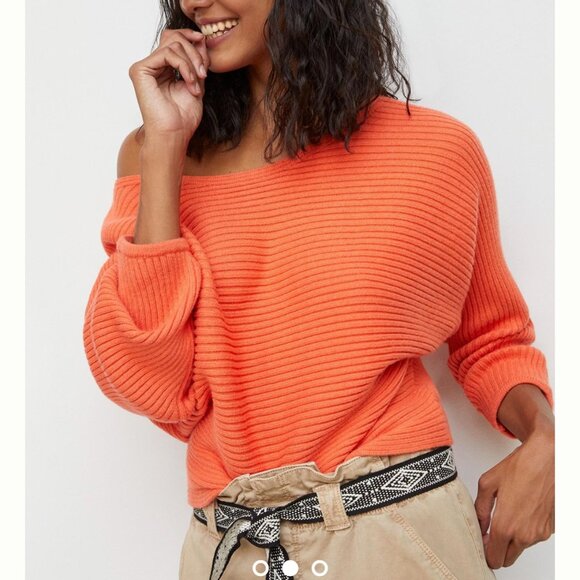 Anthropologie Kendall Cropped Ribbed Knit Orange Coral Sweater Small