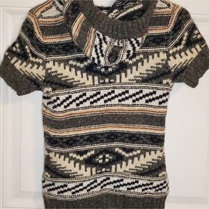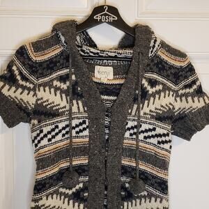 Short sleeved wool blend sweater with hood in good condition with minimal wear.