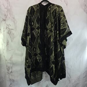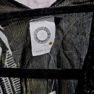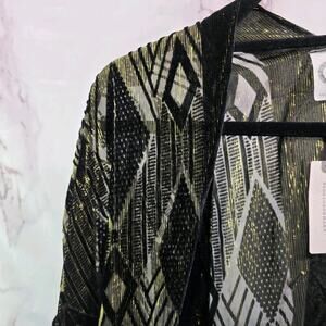 Anthropologie Kimono Womens Diamond Gold Black Velvet Robe Wrap Akemi Kin