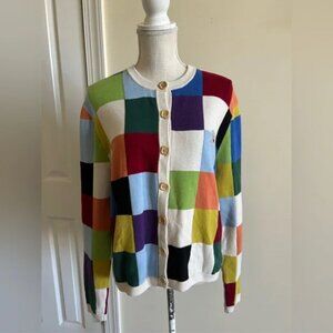 Anthropologie Kina & Tam Cubis Cardigan cotton colorblock square design size XL