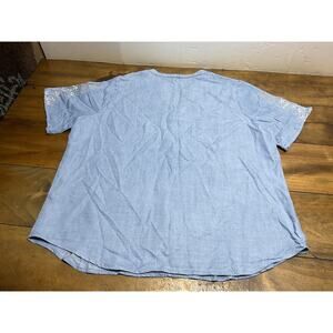 Anthropologie Kindred Women’s Chambray Floral Embroidered Shirt Plus Size 1X