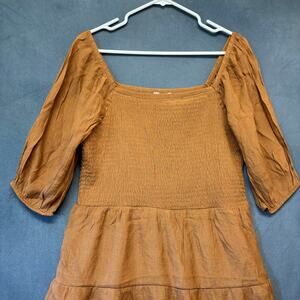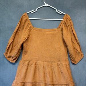 Beautiful Kings Road maxi dress in a rich sienna color, featuring a smocked bodice, square neckline, and puff 3/4 sleeves. This bohemian-inspired tiered dress is perfect for casual days, brunch dates, or festival season. Lightweight, breathable fabric with a flattering, flowy silhouette makes it ideal for summer and fall layering.