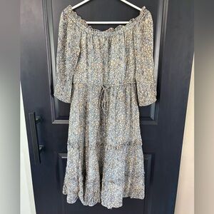 Anthropologie Kira Tiered Midi Dress Metallic Floral Girly Prairie S 6