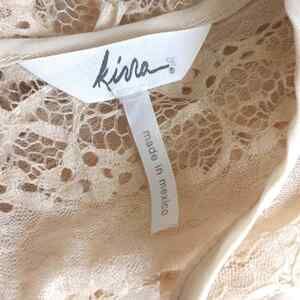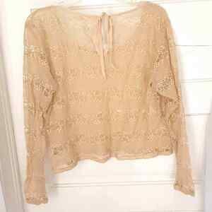 Anthropologie Kirra Neutral LACE Long Sleeve Keyhole Detail Sheer Blouse Top M