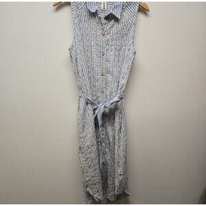 Anthropologie Kismet White & Blue Striped Eyelet Midi Shirt Dress Size 8 Womens