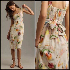 Anthropologie Klaas Jonkman Pilcro Square Neck Floral Linen Midi Dress Sz Small