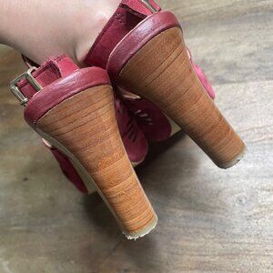 Anthropologie Klub Nico Filifera Slingback Heels Size 9 Brazil Stacked Heel