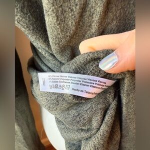 Very soft and cozy. Content and size tag has been cut out; fits like a medium/large.