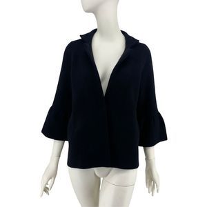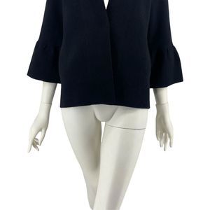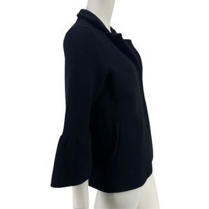Anthropologie Knit Sweater Jacket in Black Size XS. New with Tags. Style 052910. Anthropologie knit jacket. Stand up collar, bell sleeves, hidden front button. Two welted hand pockets. Unlined. 49% viscose 28% polyester 22% nylon 1% elastane. Retail $160. Approximate Measurements: Underarm to Underarm-19" Length-25."