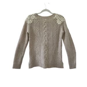 Anthropologie Knitted & Knotted Cable Knit Wool Blend Sweater Women’s Tan Size X